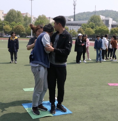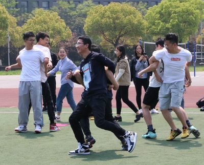 开场的趾压垫接力赛刺激异常,虽然在赛前每组同学都有热身,但真正踩上指压板的那一瞬间,大家的表情都非常丰富。比赛在惊叫和笑闹声中很快结束。蹲跳接力比赛大家更是状况百出,有步伐一致的从容,也有磕磕绊绊的艰难,甚至还有直接背起队友引起观众惊叫连连,一时间,大家情绪高涨纷纷欢呼呐喊。而竹筷传递时各组员虽然因为传递姿势频频笑场,但都没有丝毫犹豫,顺利完成。最后一项既考验肢体协调又考验团队协作能力的抱团站立比赛中,经历了前面几场比赛的熟悉和配合,团队的默契被渐渐培养起来,虽然开始状况频出,但最终都摸索到了适合自己队伍的方法,成功抱团。趣味运动会到此欢乐结束。
